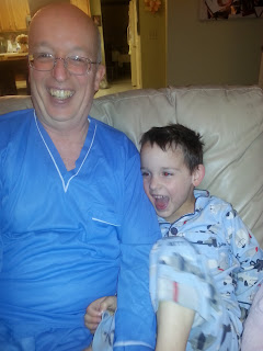 Family Story: My dad has had these blue pajamas for over 40 years (not kidding). He is famous in our family for them. When Adam wears his blue pj's he always says he looks like Gpa Clyde. So we wanted to make sure we got a picture of them. And of course the girls didn't want to be left out!